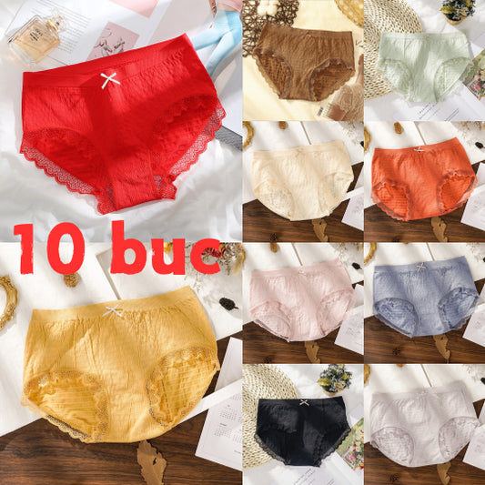 【10PCS】Grafenowe, antybakteryjne, bawełniane, seksowne majtki z koronką, duże rozmiary【40-85kg】