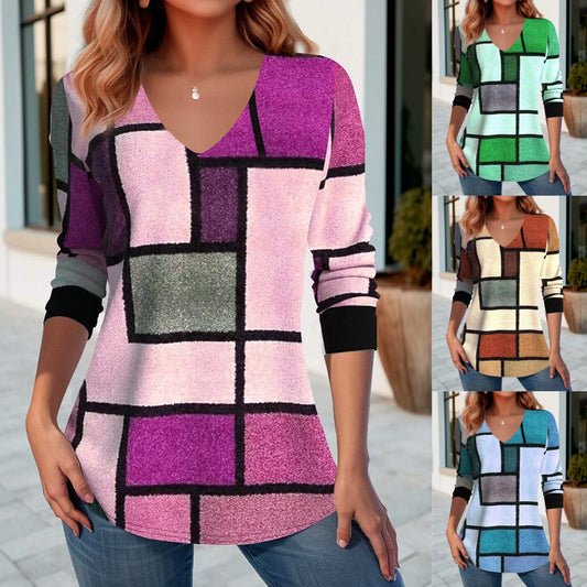 💥【S-5XL】Jesienny T-shirt z nadrukiem i dekoltem w kształcie litery V