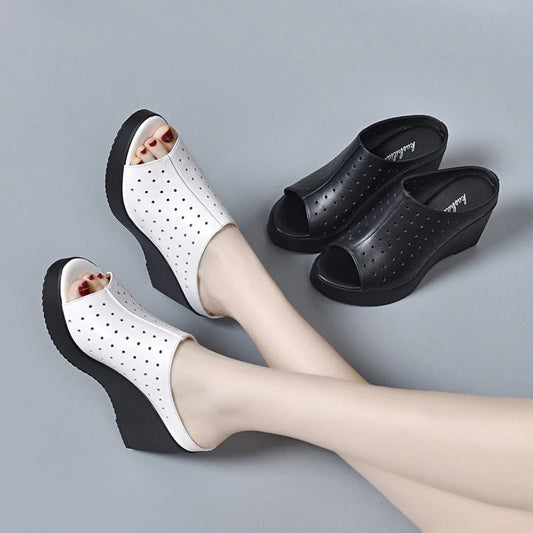 🔥👡【36-43】Sandały damskie ze skóry naturalnej na platformie zwiększające wzrost