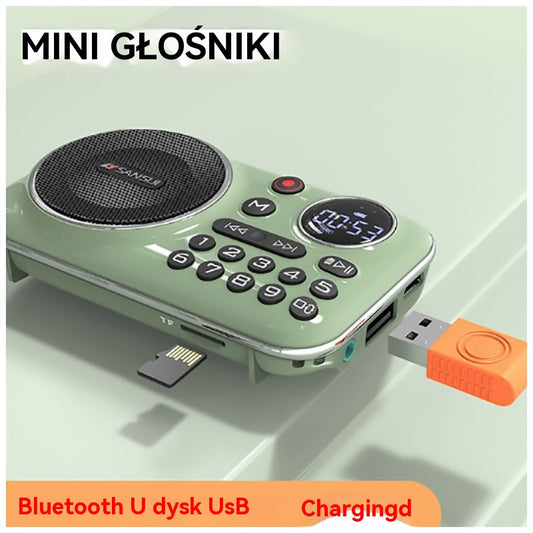 Radio Bluetooth F21, można włożyć płytę U, przenośny odtwarzacz muzyczny, można włożyć słuchawki, słuchać radia