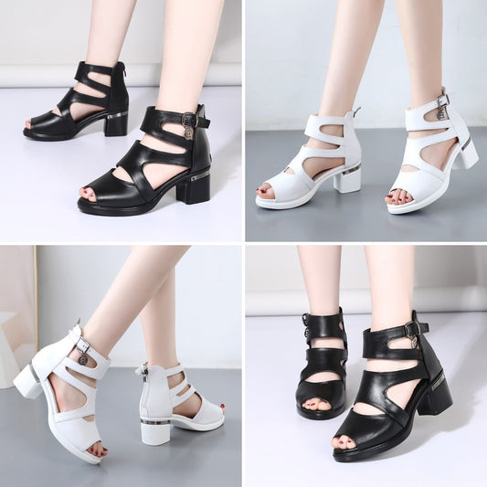 🏆【35-41】2025 nowe letnie sandały z grubymi obcasami i wydrążonym pyskiem ryby