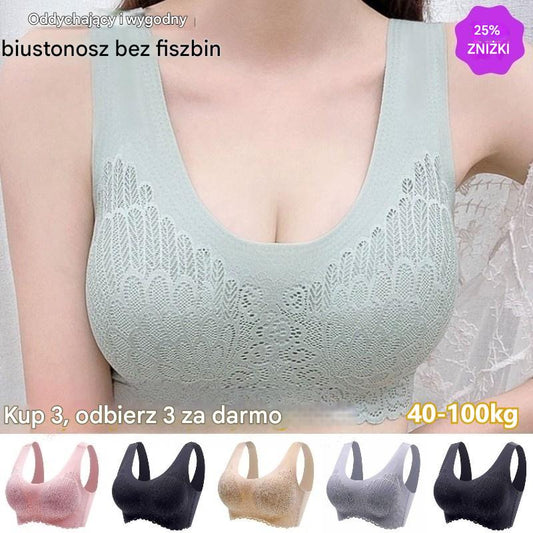 🔥👙【40-120 kg】【balení po 3 kusech】✨Dámská krajková podprsenka bez kostic, vysoká opora