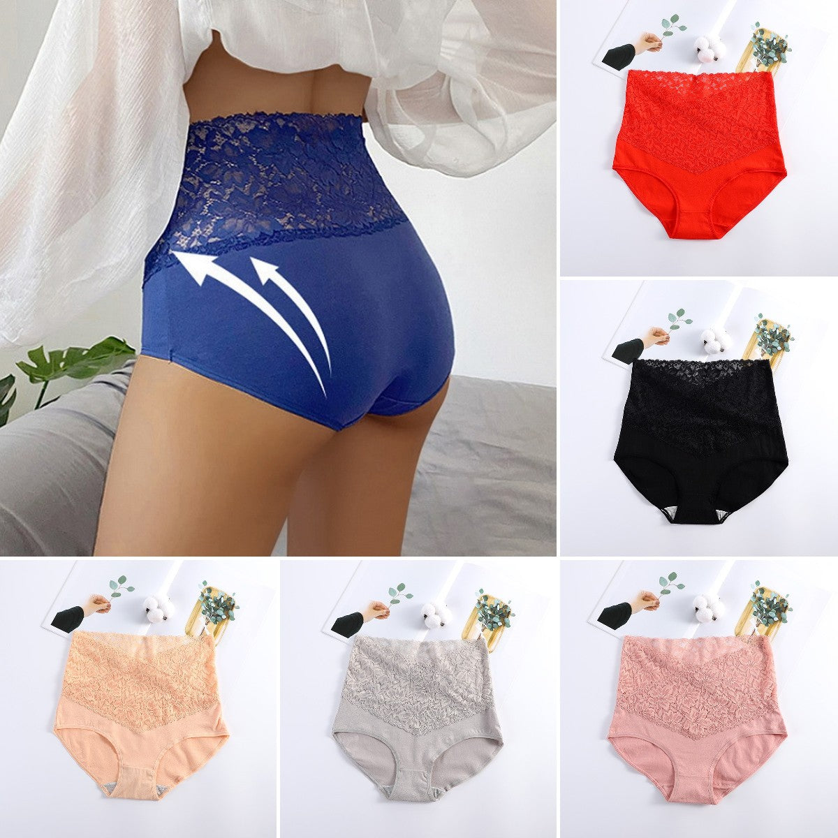 🔥【paquete de 6】 💥Bragas de cintura alta con encaje de algodón antibacteriano