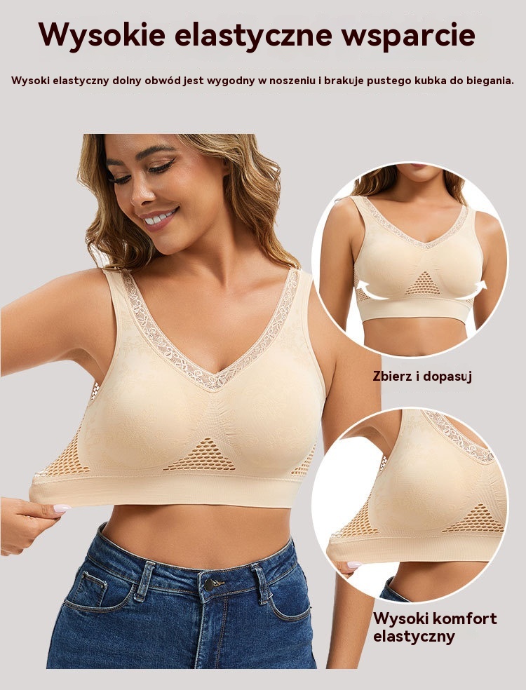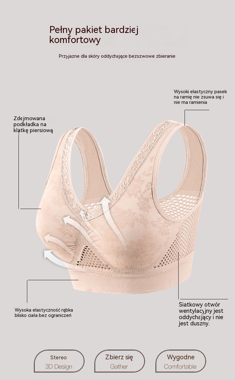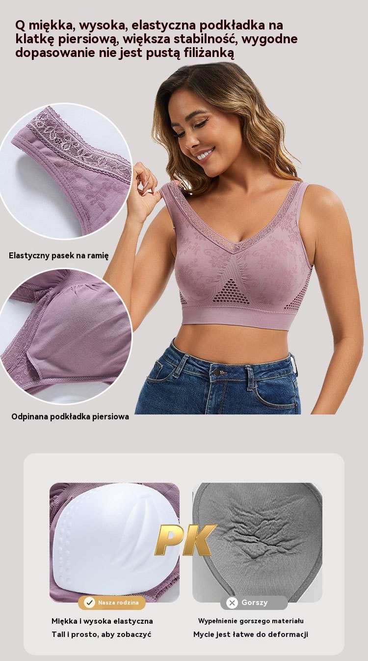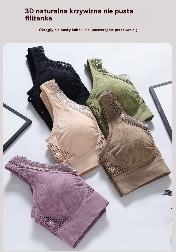 🔥👙【40-120 kg】【Zestaw 3 sztuk】✨ Biustonosz koronkowy bez fiszbin z wysokim wsparciem dla kobiet