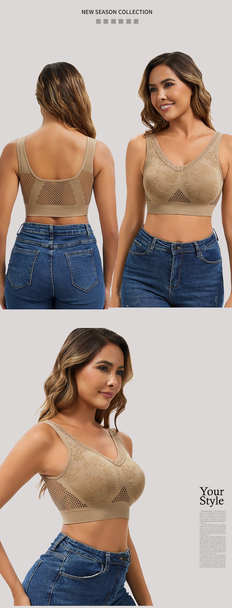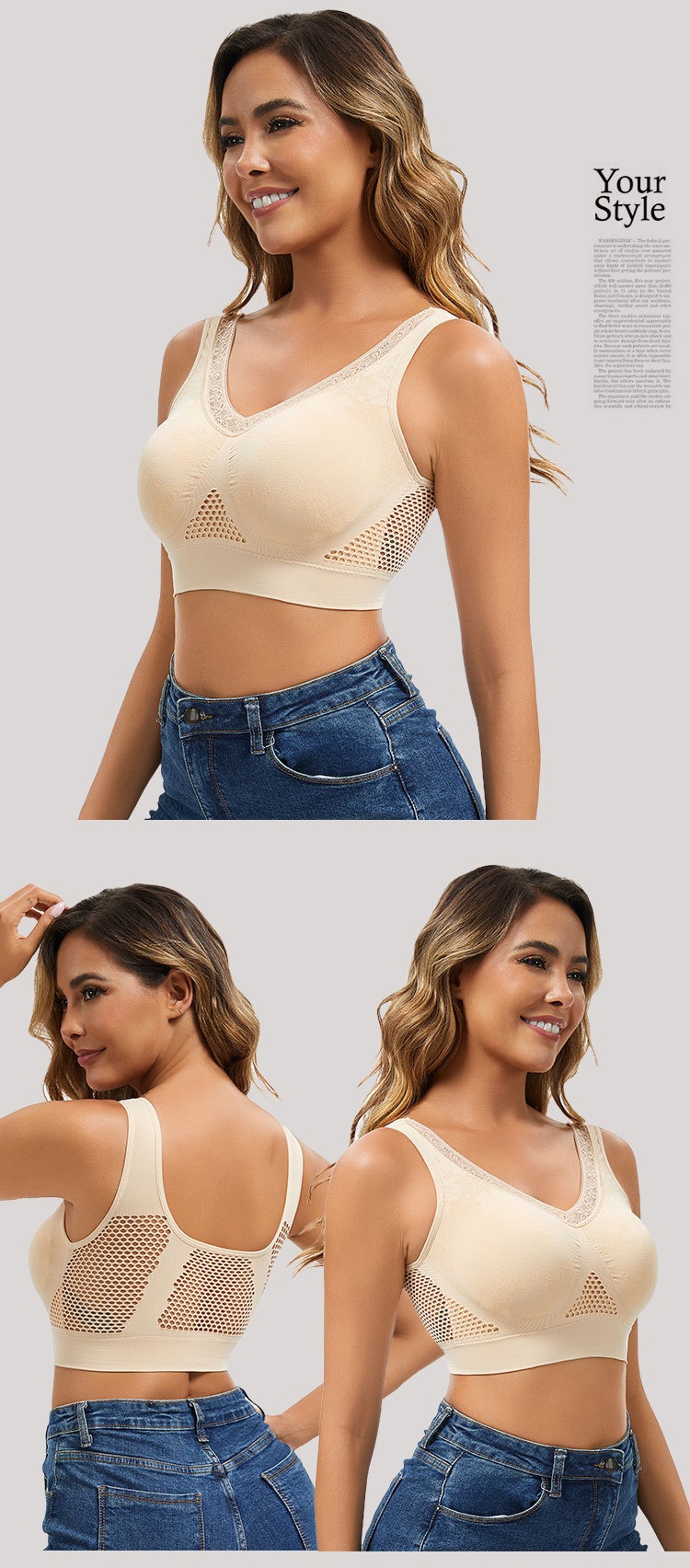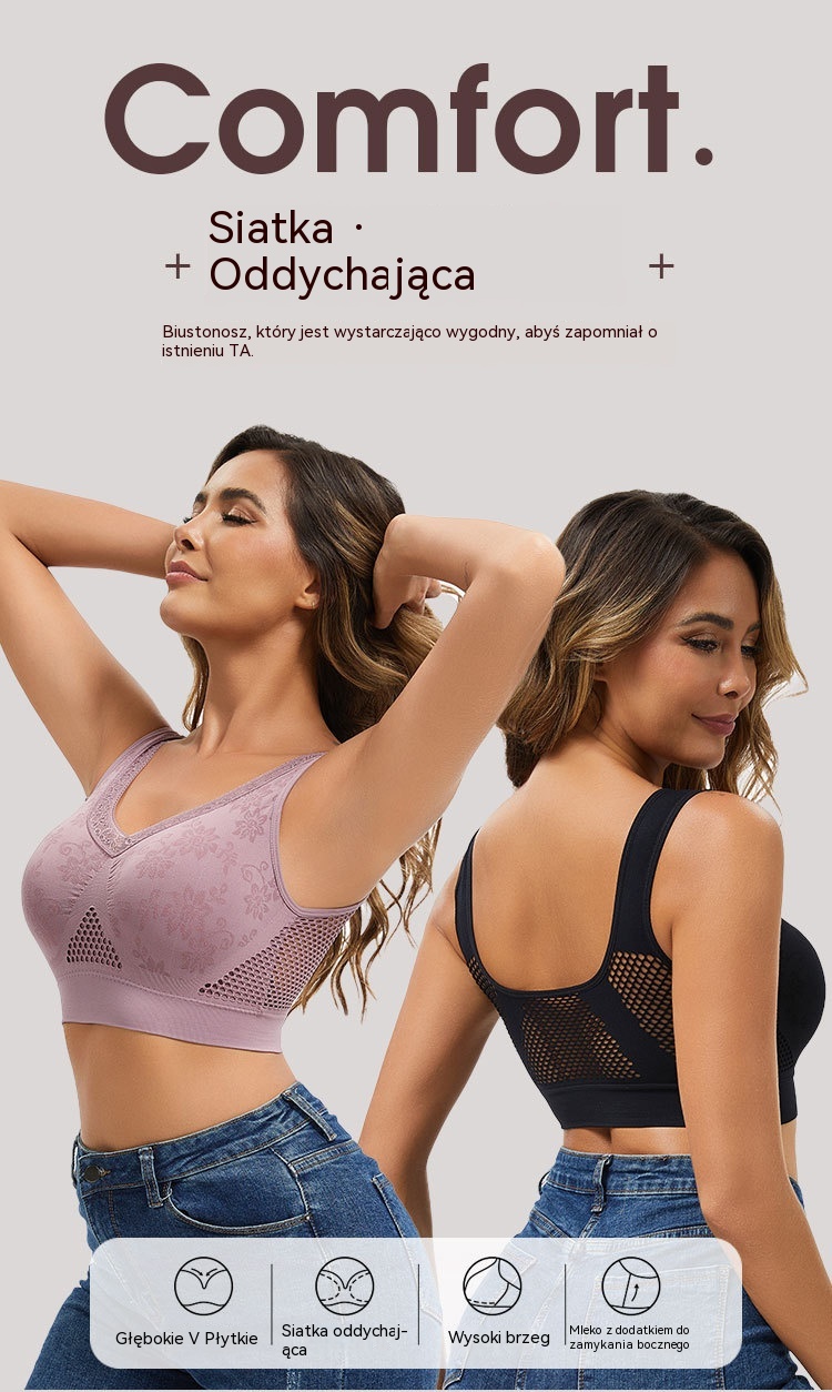 🔥👙【40-120 kg】【Zestaw 3 sztuk】✨ Biustonosz koronkowy bez fiszbin z wysokim wsparciem dla kobiet