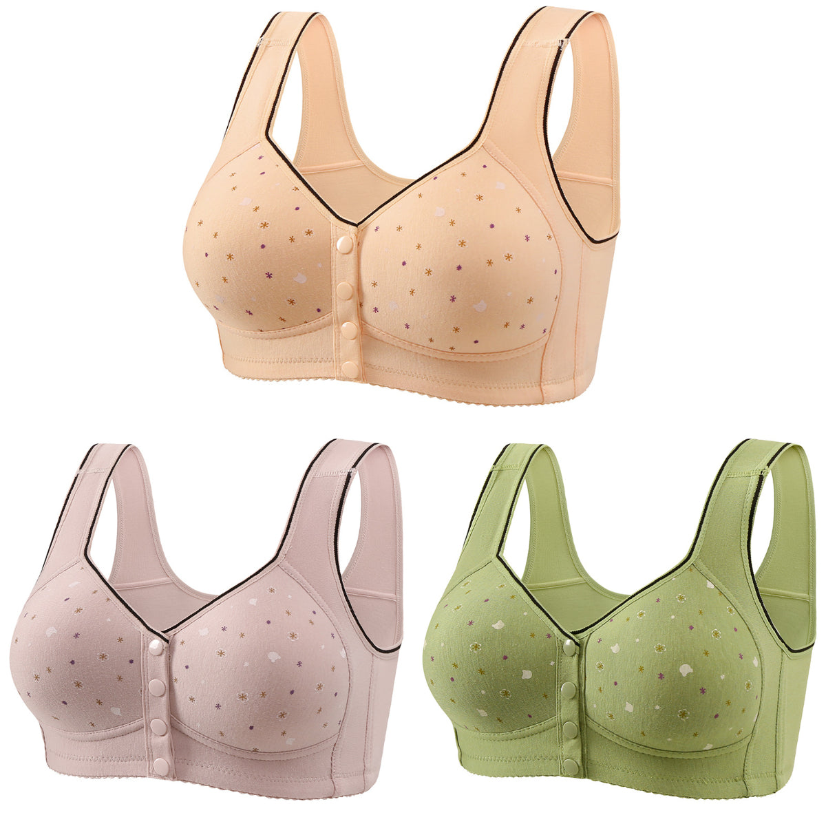 😍【Paket 3 kosov】Ženski brezžični modrček z gumbom spredaj 【40-120kg】❤️Bumbac naravni antibakterijski udoben udoben